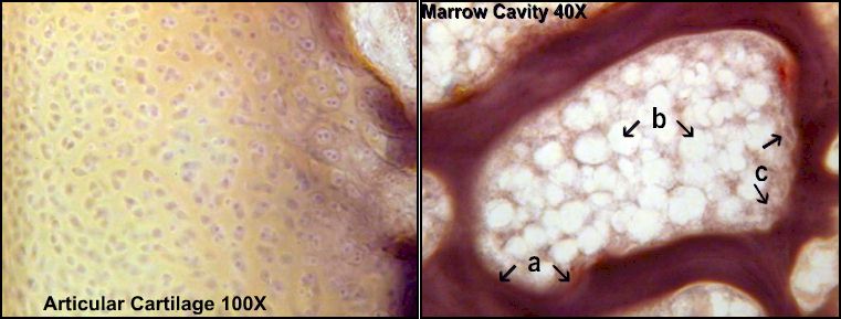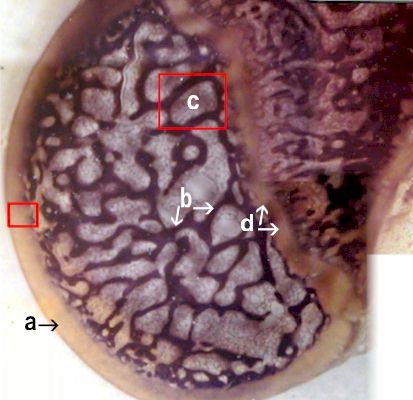 Click on red squares to see details of red marrow cavity and articular cartilage.