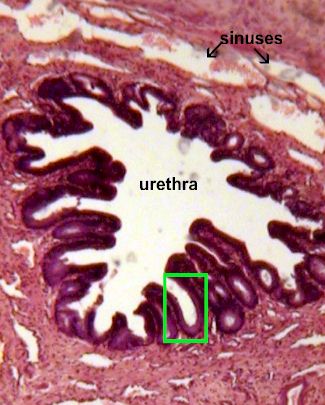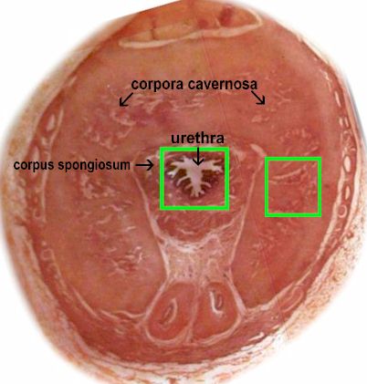 Click on green squares to see the details of the erectile tissue and the urethral epithelium |
