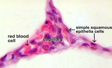 Note the very thin simple squamous cells that make up the alveolus.