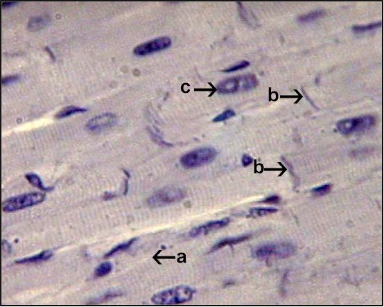 notice: the striations of the cardiac cells