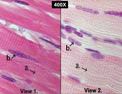 nuclei up against the cell membrane of a muscle fiber (multinucleate).