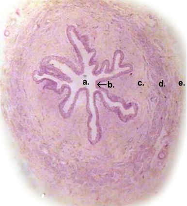 - d. Longitudinal muscular layer (bumpy purple layer)